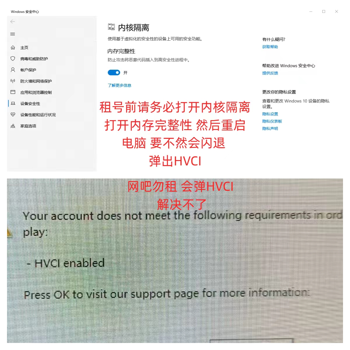 1.由于HVCI enable引起的报错然后闪退