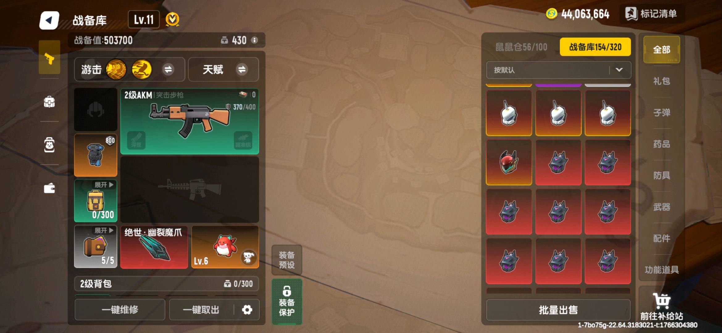 【安卓】 香肠派对美味值73万,升级枪全部有,各种直购皮肤,枪皮也都有,摸金模式已经完成季票,拥有大量6级枪甲