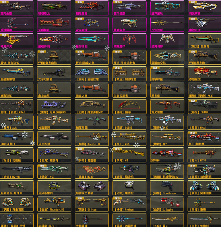 双黯四件套五特典狙加特林黯火黯影●金兔龙神威次元恶魔天使雷魔神●重铸怀旧套光束闪电维京套暗影暗火