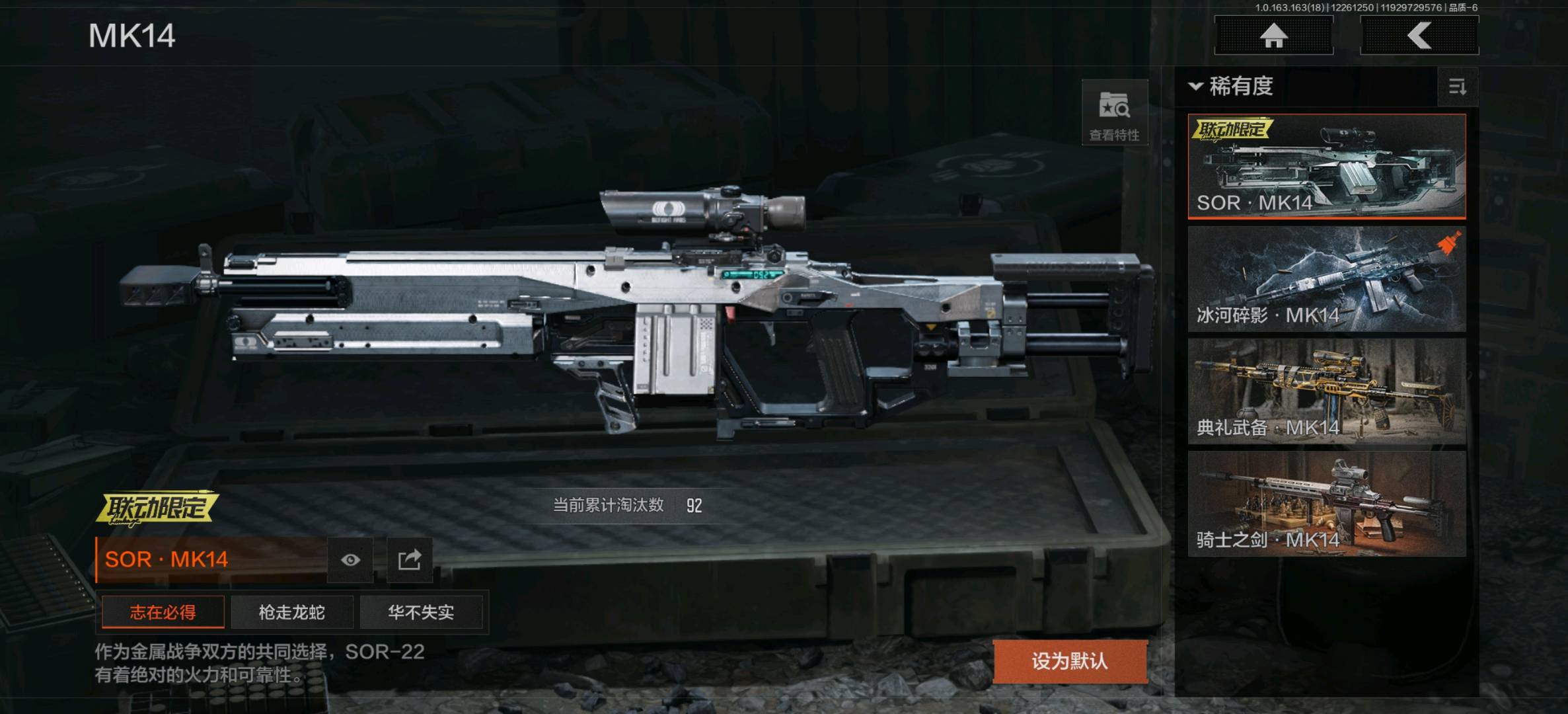战术甲胄防护手套;伦琴幻影FAL,包络战术AKM,伦琴幻影H416,战术大师AK102,告丧夜曲AUG,告丧夜曲AR57,旗帜AEK,旧王圣谕QBZ191,乌金黑曜QBZ192,利齿风暴MPXSORMK14,旧王圣谕VSS,骑士之剑VSS,冰河碎影MK14,棱光裂变QBU191,