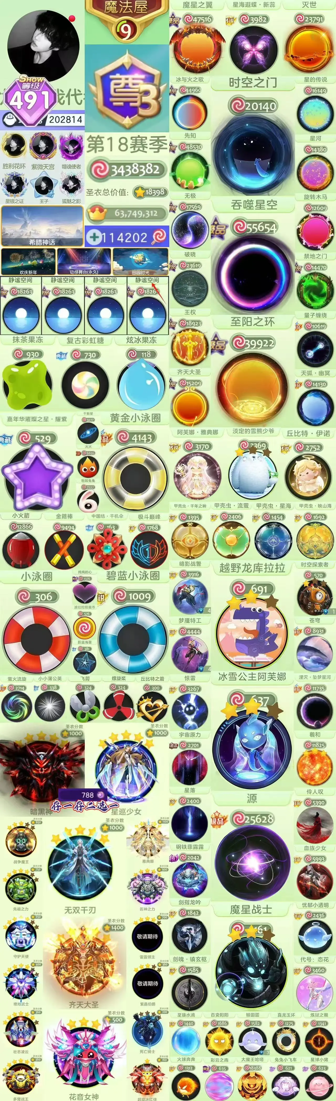 静谧空间*高赛季尊491秀吞噬黑洞时空2级阿芙娜嘉年华璀璨之星3黄金泳圈丘比特伊诺甲壳虫阿芙娜雅典娜