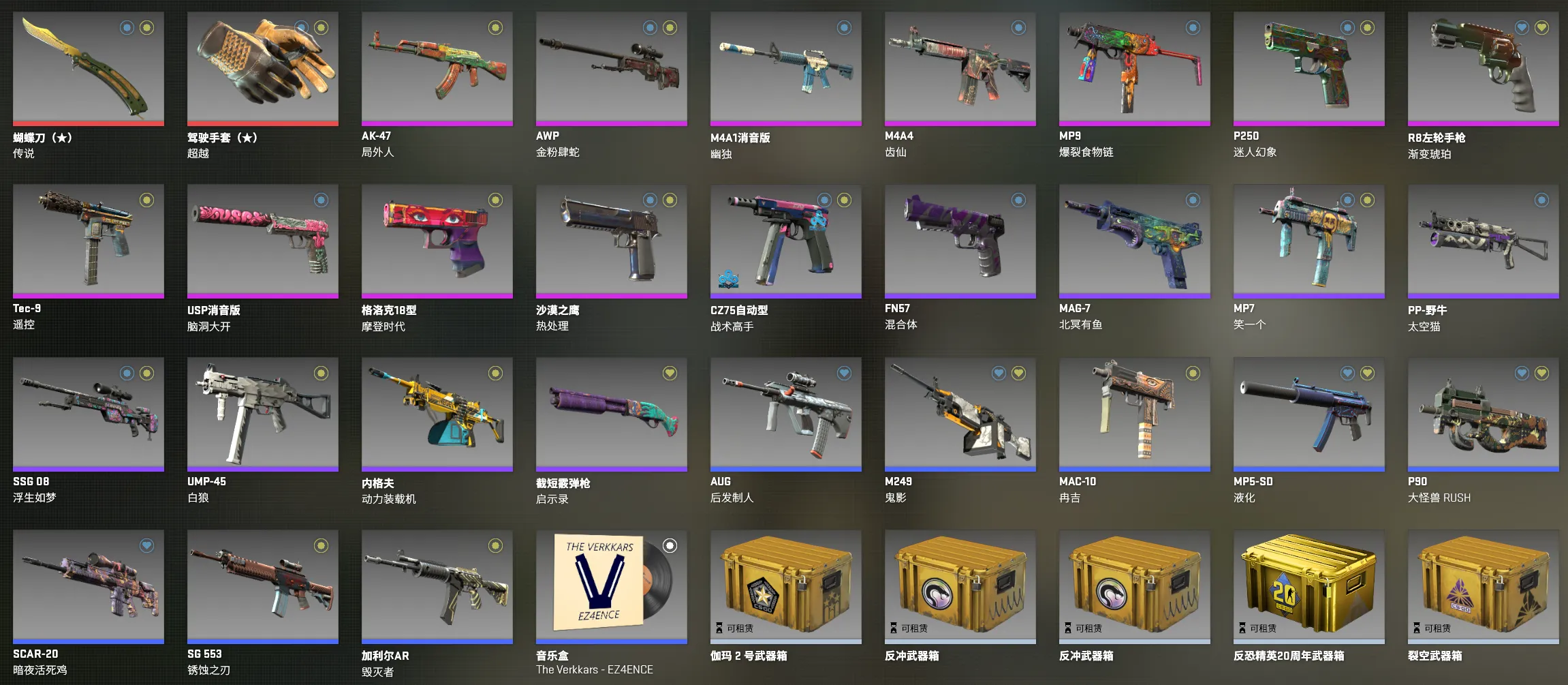 只可5E授信优先 ✅传说蝴蝶刀⭐超越手套⭐局外人AK⭐幽独⭐齿仙⭐热处理沙鹰⭐音
