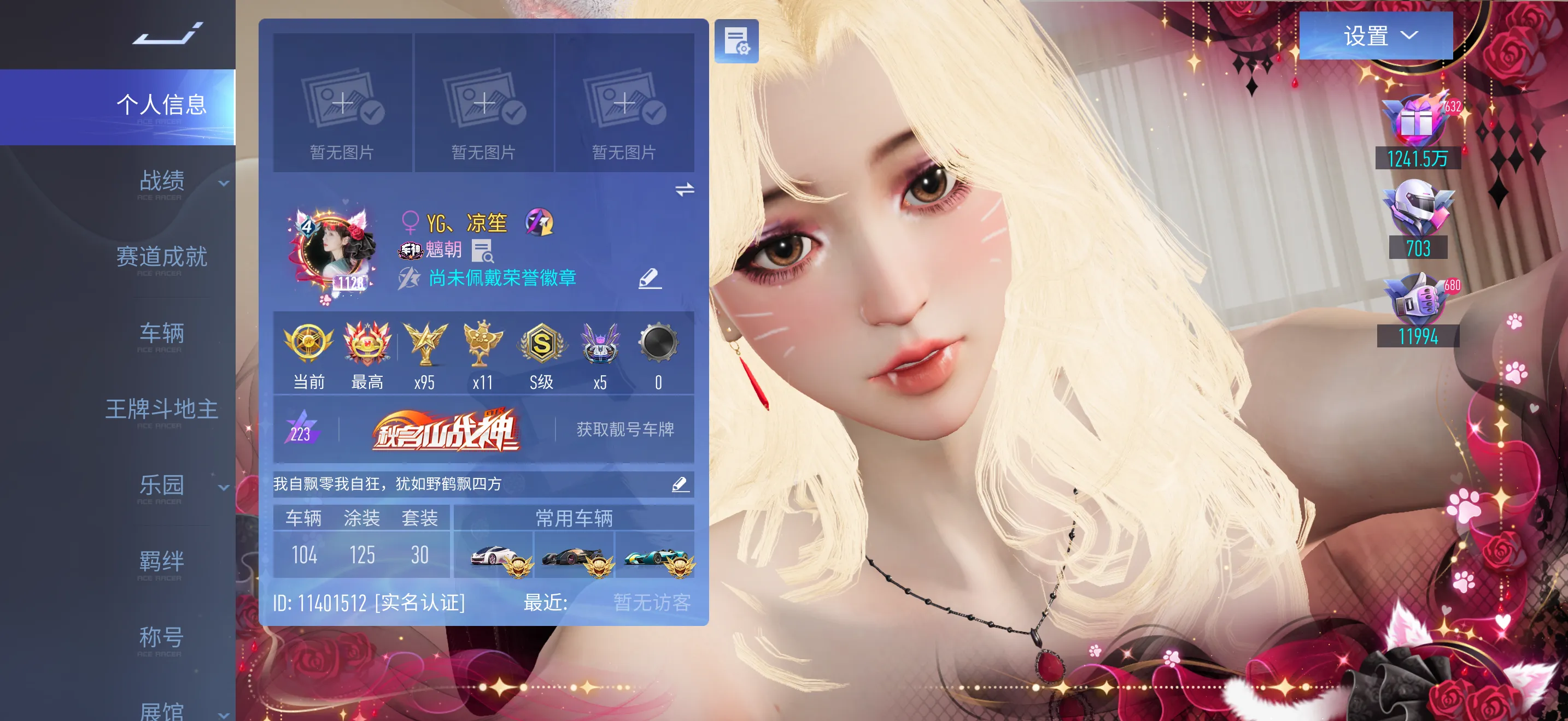 黄金车手1段位,藏车管25级满级,36个金色称号,11个金色品质轮毂,2个金色品质车牌以及四连号车牌T6666。