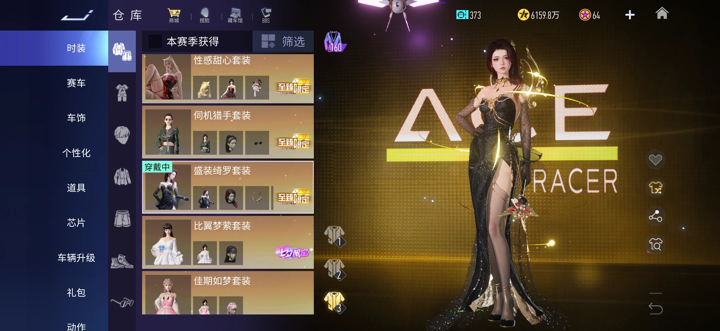 【苹果】 贵族9 角色等级1128级 性感甜心套装、伺机猎手套装、盛装绮罗套装、比翼梦索套装、佳期如梦套装