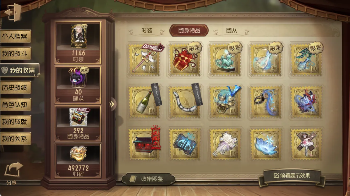 - 随身物品数量: 292