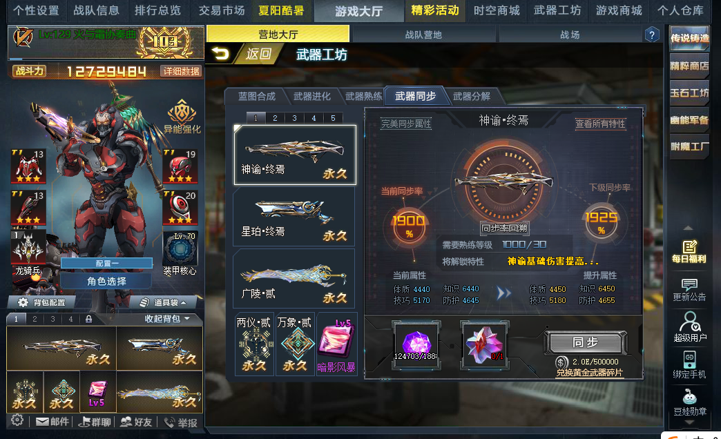 星珀终焉1625同步、满同步异能典藏星核、1900同步典藏神谕、六红魔童阿瑞斯、满级丧钟鲨皇、广陵贰1875同步、纵横贰1800同步、飞梭贰1800同步、风神贰1625同步、不灭星核贰满同步、黯水晶绝贰满同步