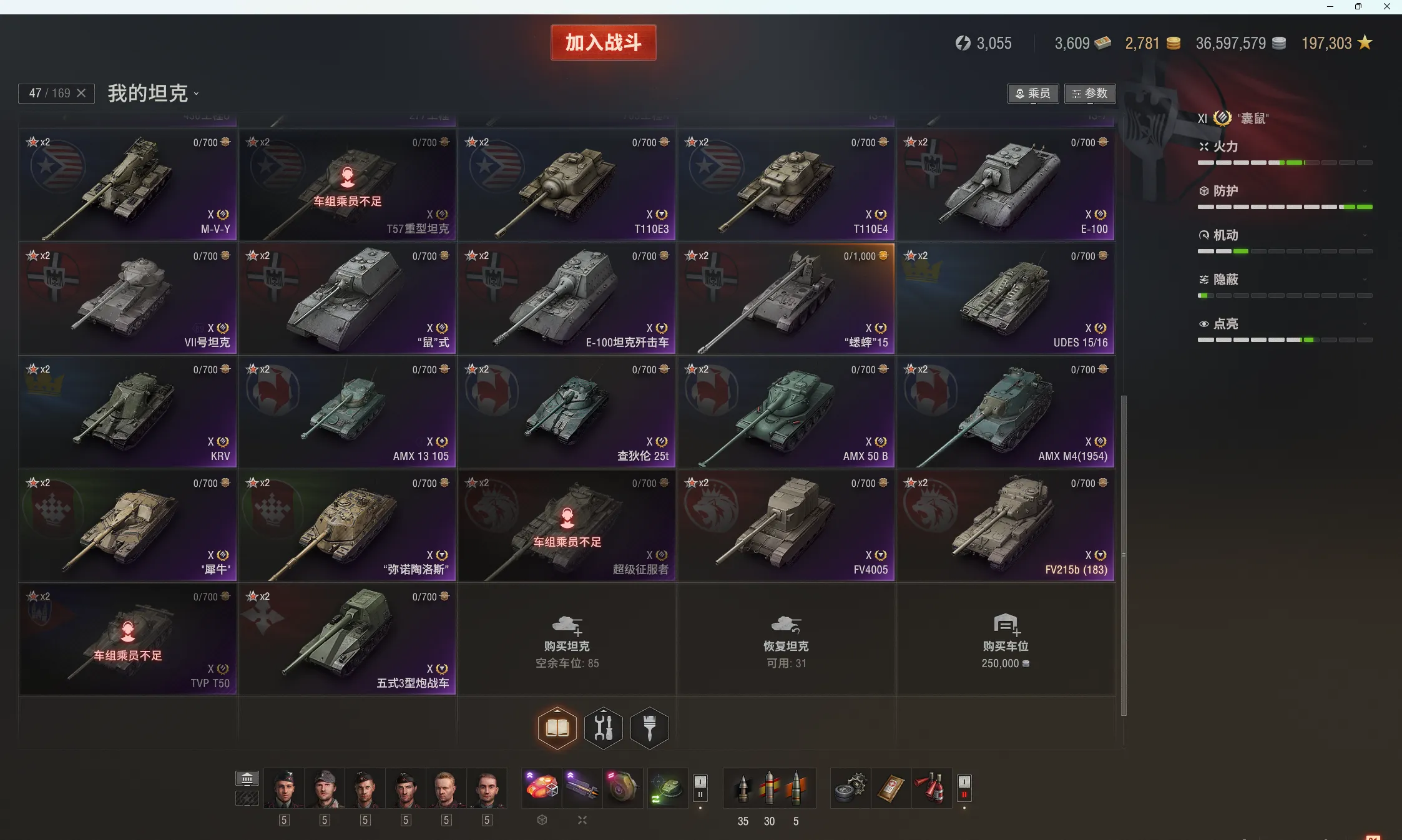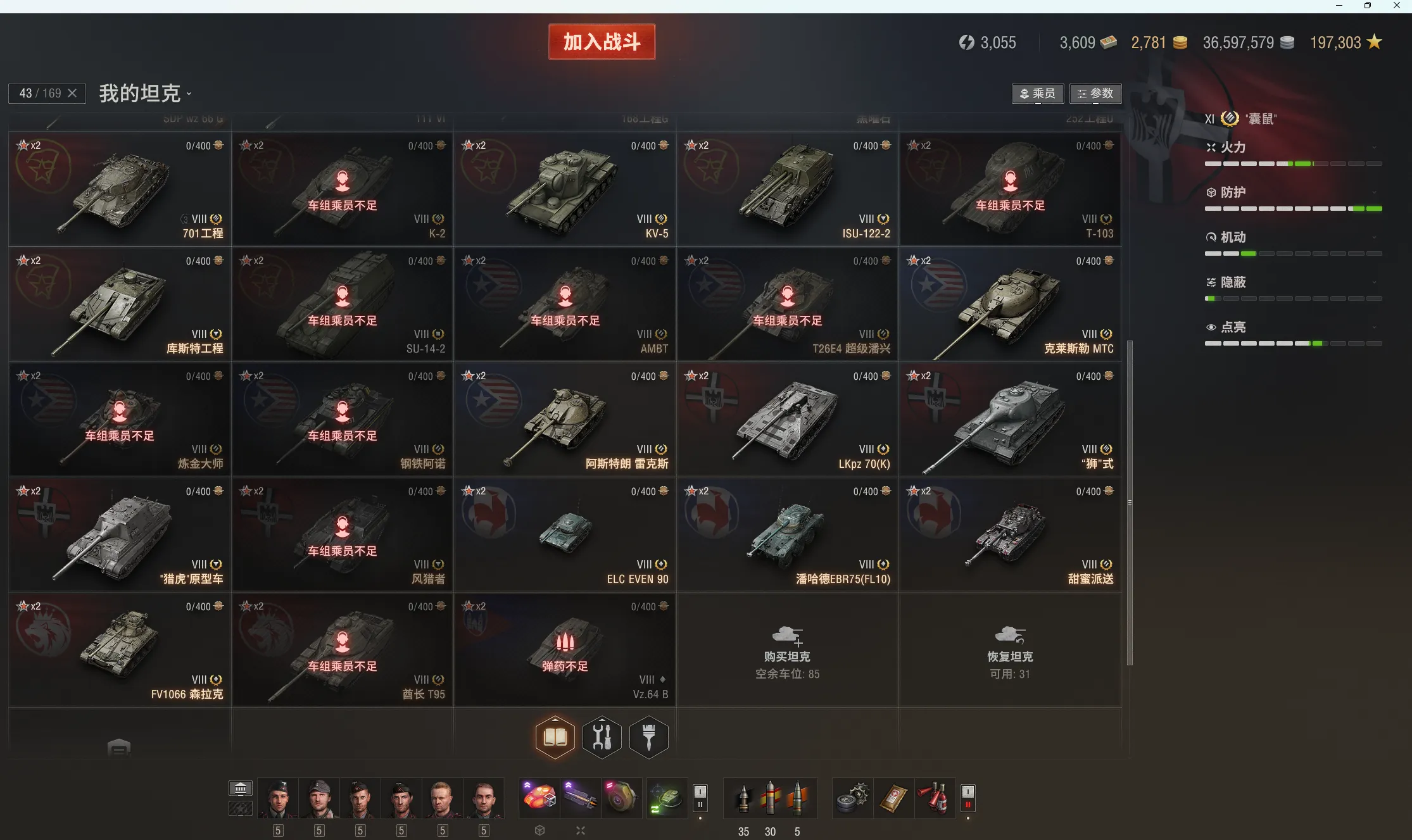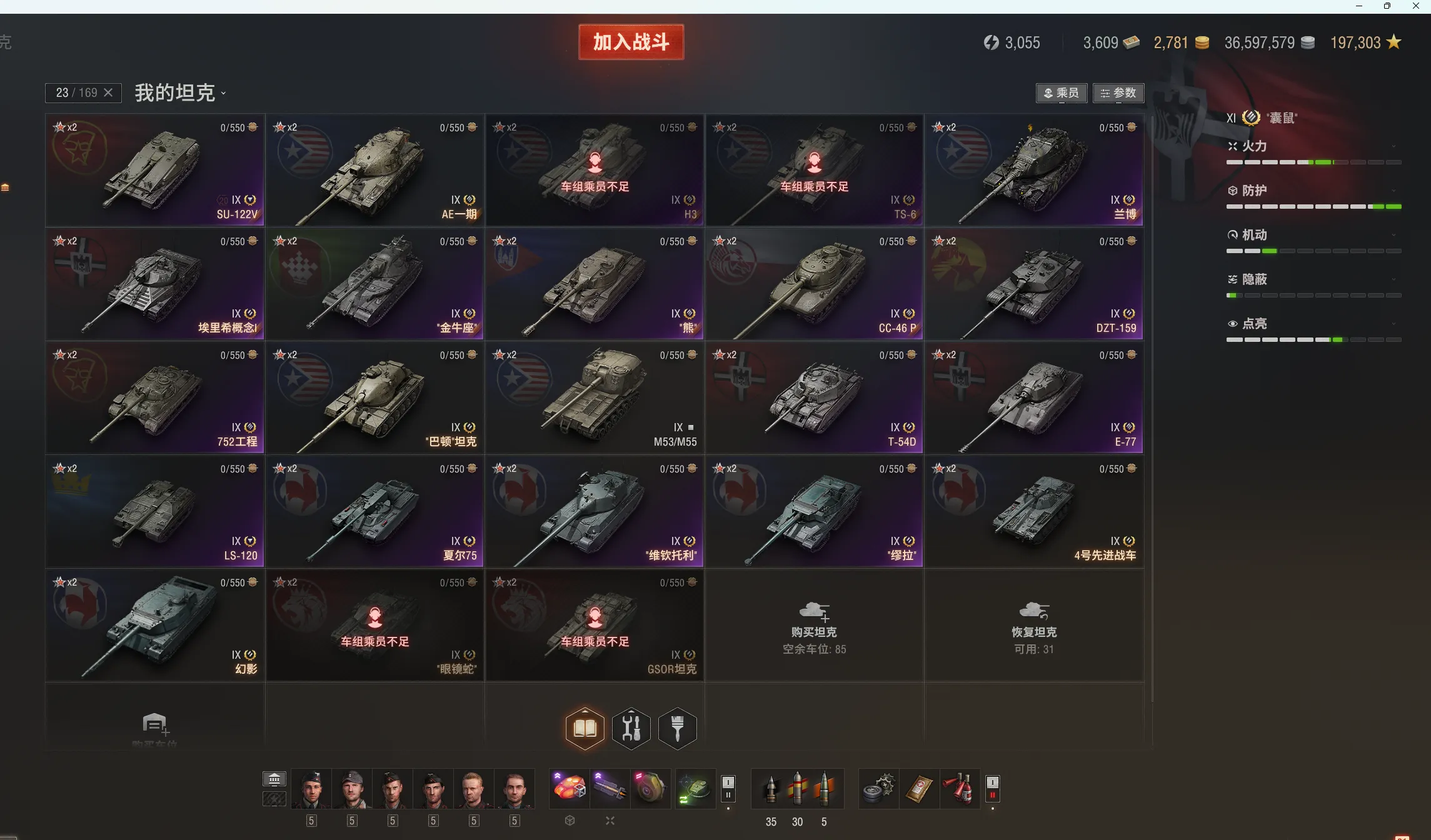注意事项:1,进入游戏后,如果车辆情况不符。那是因为前面的玩家筛选了自己玩的坦克,其他的隐藏了。坦克显示栏,左下角小坦克标志,点进去把所有系别和级别选上,坦克就全部出来了。