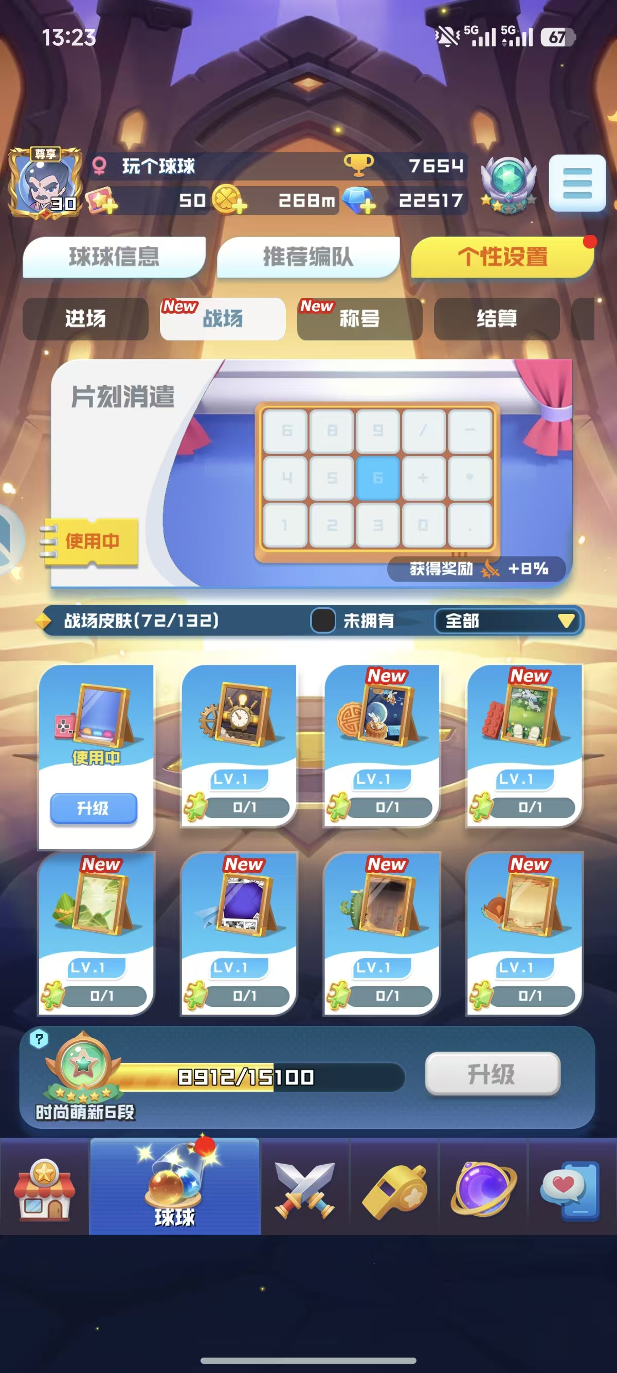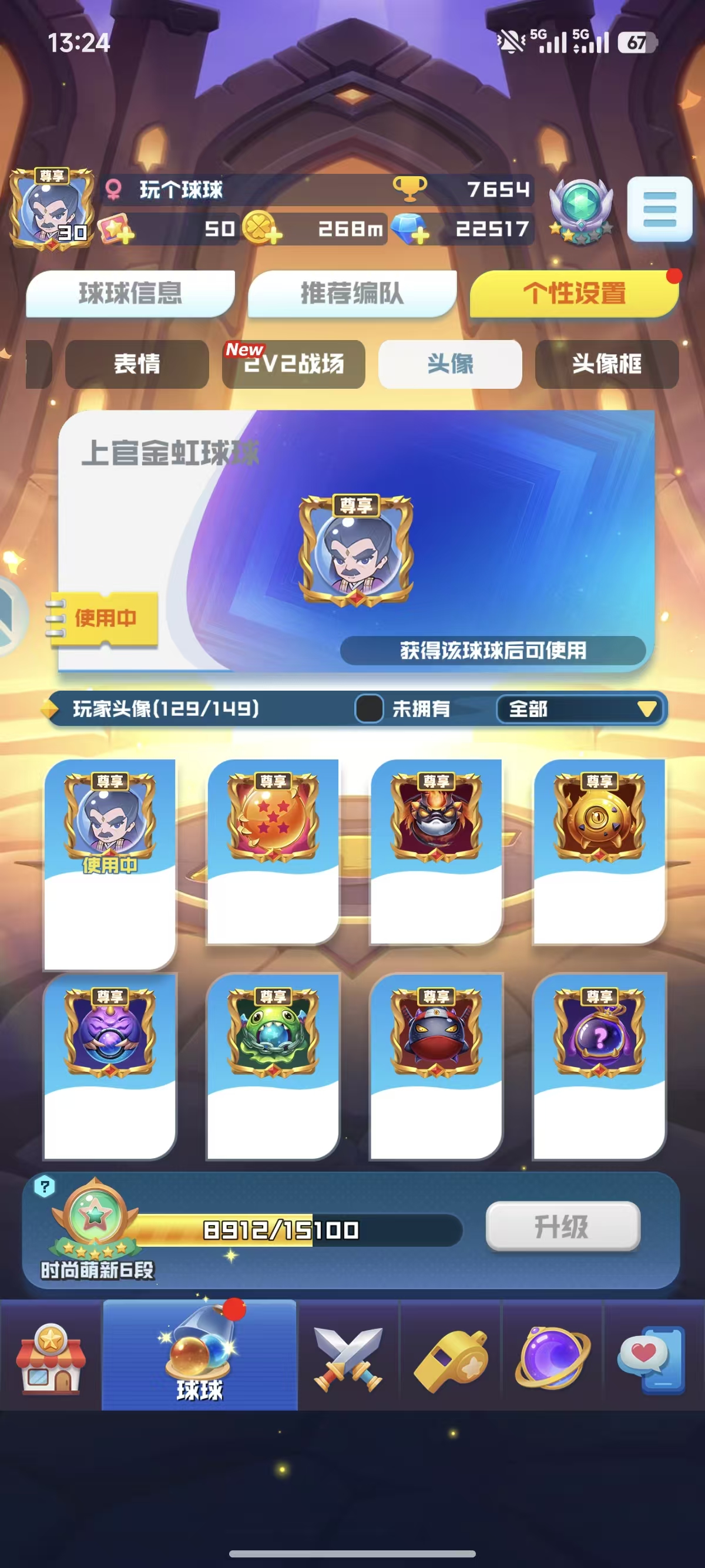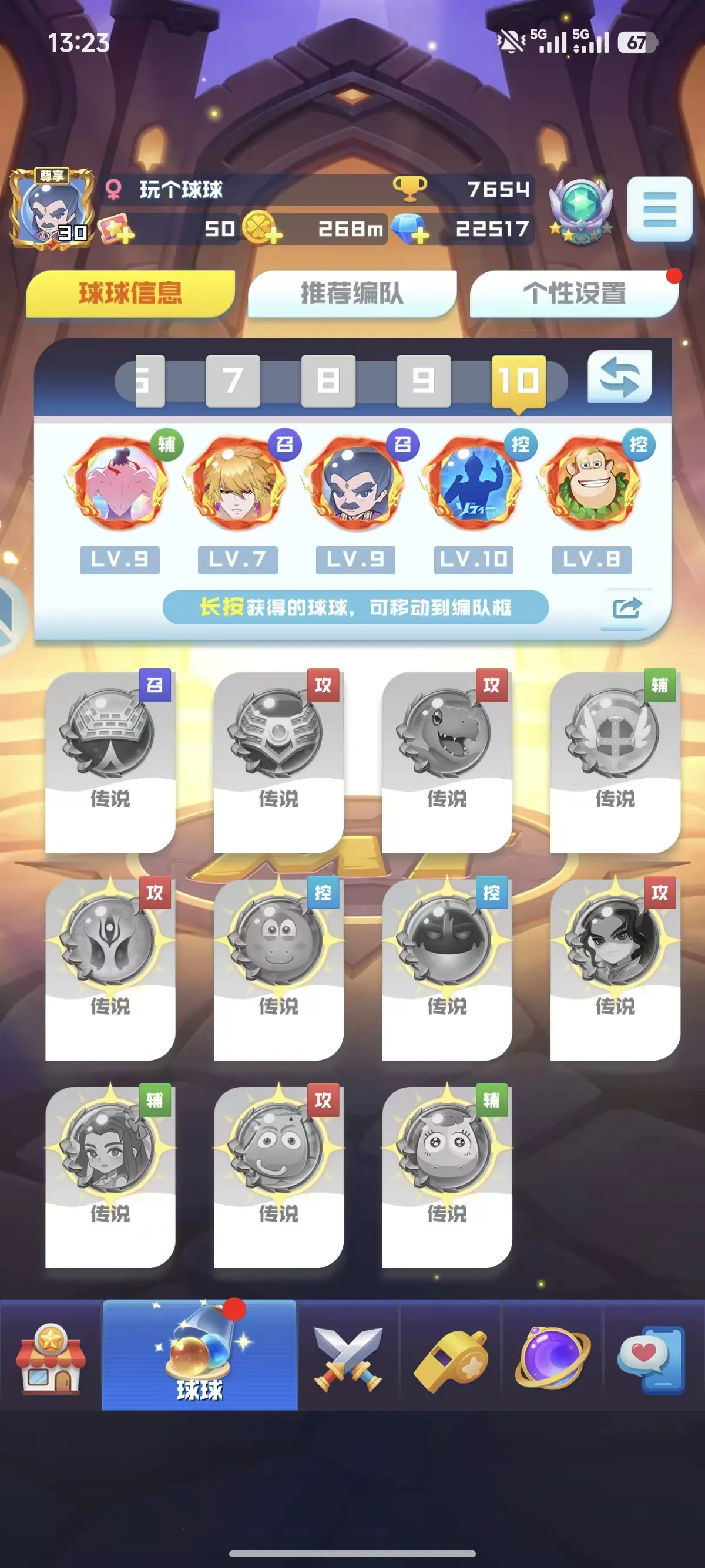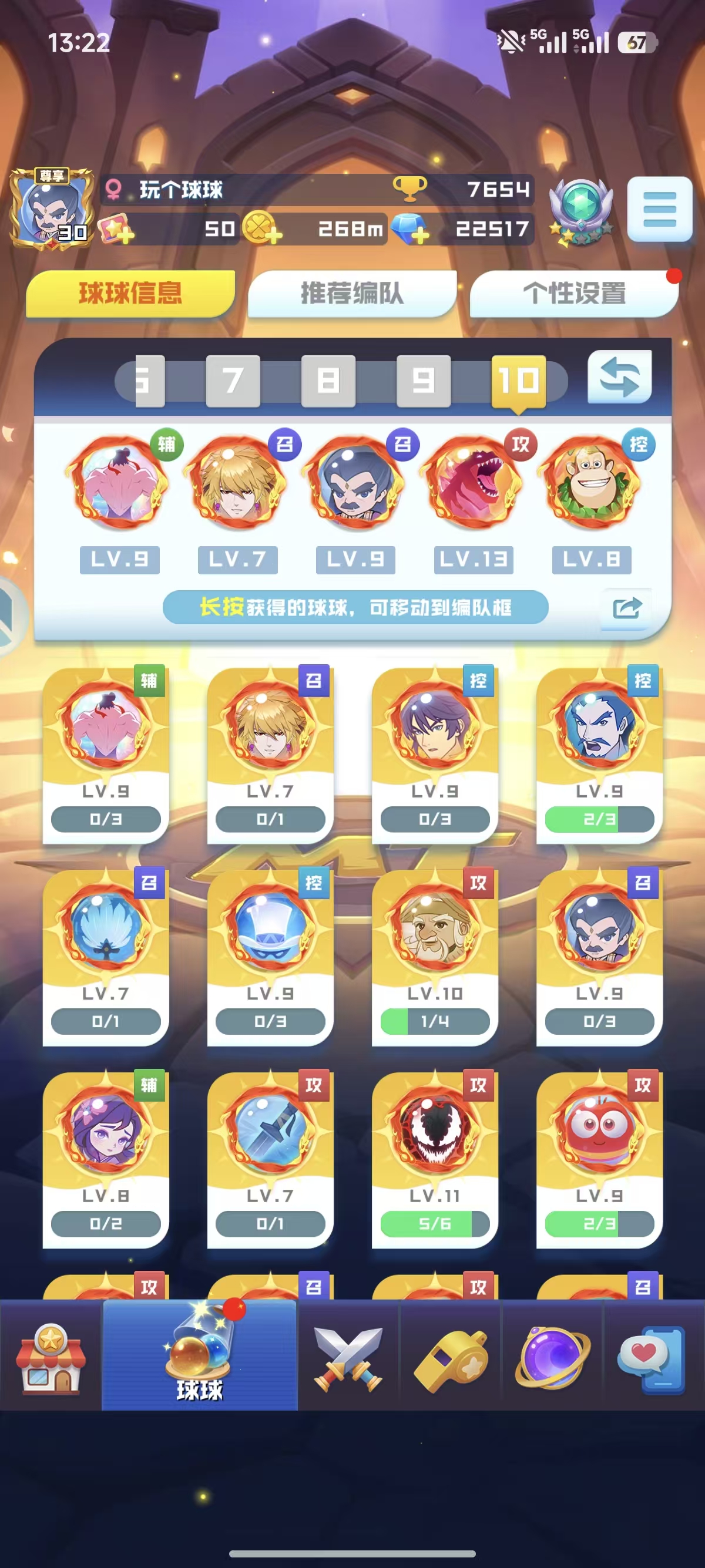 官服:14无限16魔力13盾9轮子17圣光16天使 4669%爆9阵,大部分的联动球球都有