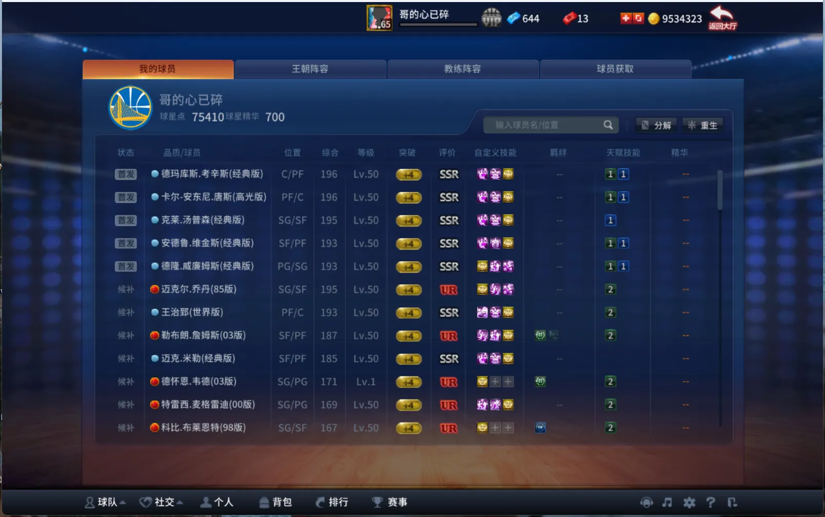 美航射手群❤️SSR 德隆❤️SSR 克莱❤️SSR 嘴哥❤️SSR 唐斯❤️SSR 考神 技能齐全